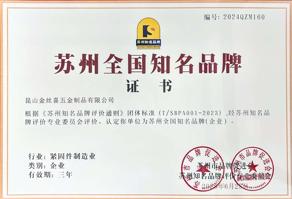 KunshanJinsixiSpoločnosť Metalware Co., Ltd. bola oficiálne ocenená titulom „National Slávna značka v Suzhou“ za vynikajúcu kvalitu produktu, vedúcu technologickú silu, komplexný systém služieb a rozsiahly vplyv na trhu!