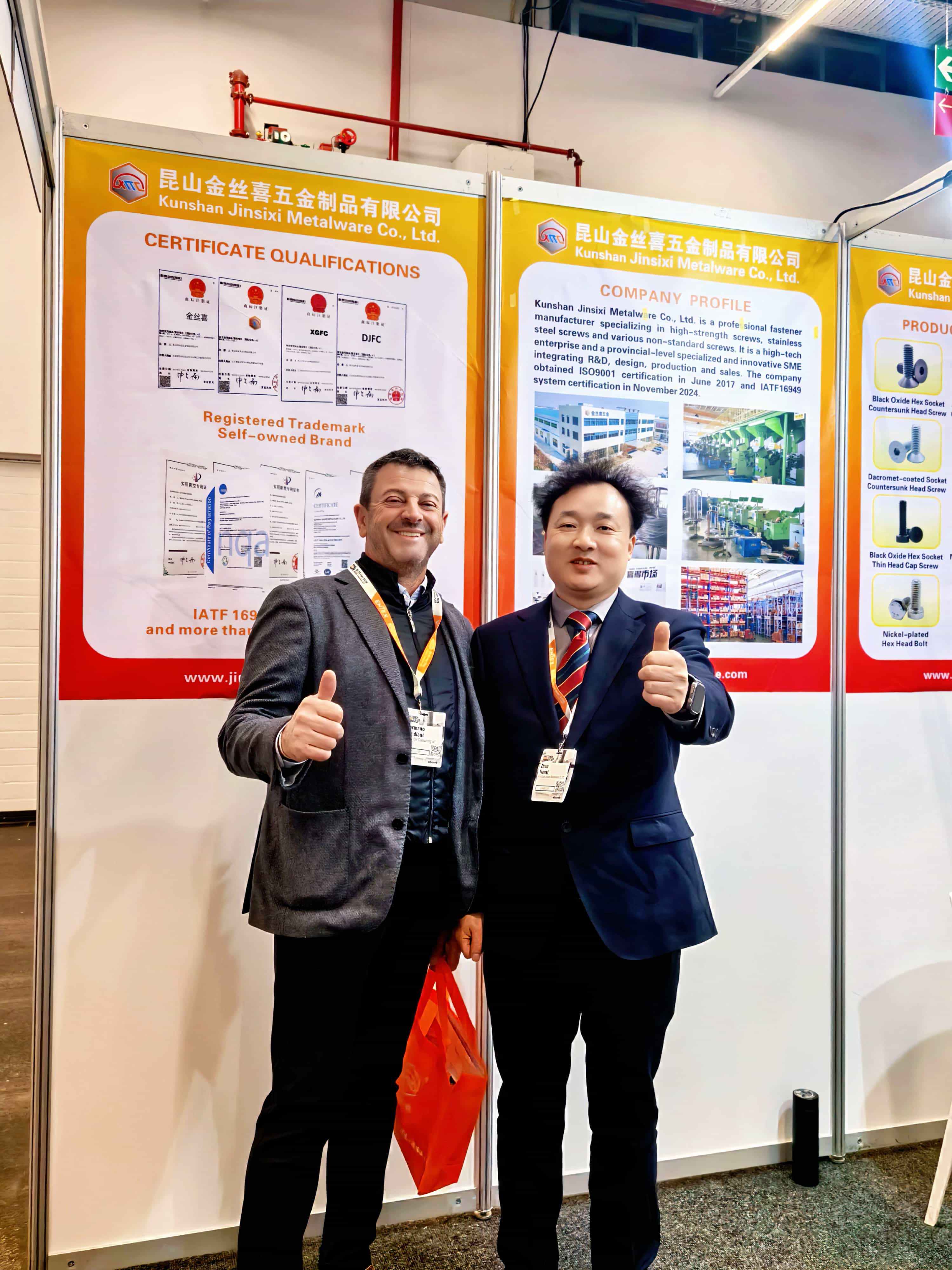 Kľúčovým vrcholom výletu boloJinsixipôsobivá prítomnosť na Frankfurtskom veľtrhu spojovacích materiálov od 23. do 25. marca. Ako popredná výstava spojovacích materiálov v Európe sa na veľtrhu stretli vysokokvalitné spoločnosti z desiatok krajín a regiónov, ktoré slúžia ako dôležitá platforma pre zobrazovanie značiek, vytváranie sietí zdrojov a rozvoj trhu. Na výstave spoločnosť Jinsixi prilákala mnohých medzinárodných nákupcov a odborníkov z odvetvia vďaka vynikajúcemu výkonu produktu, prísnej kontrole kvality a profesionálnym službám. To nielenže ukázalo výhody produktov spoločnosti a zlepšilo viditeľnosť a reputáciu jej značky na globálnom trhu, ale poskytlo aj cenné poznatky o charakteristikách a požiadavkách európskeho trhu, čím sa položil pevný základ pre budúcu expanziu trhu a úpravy produktovej stratégie.